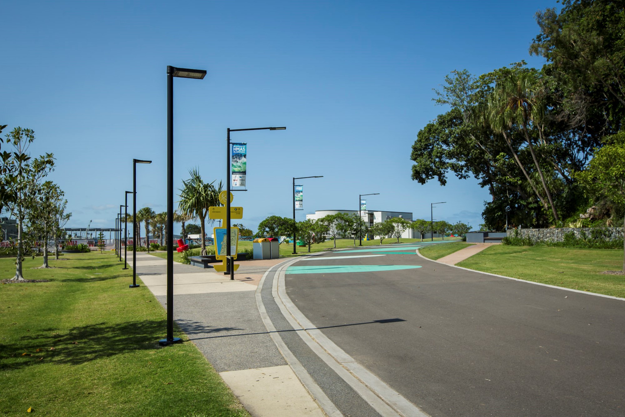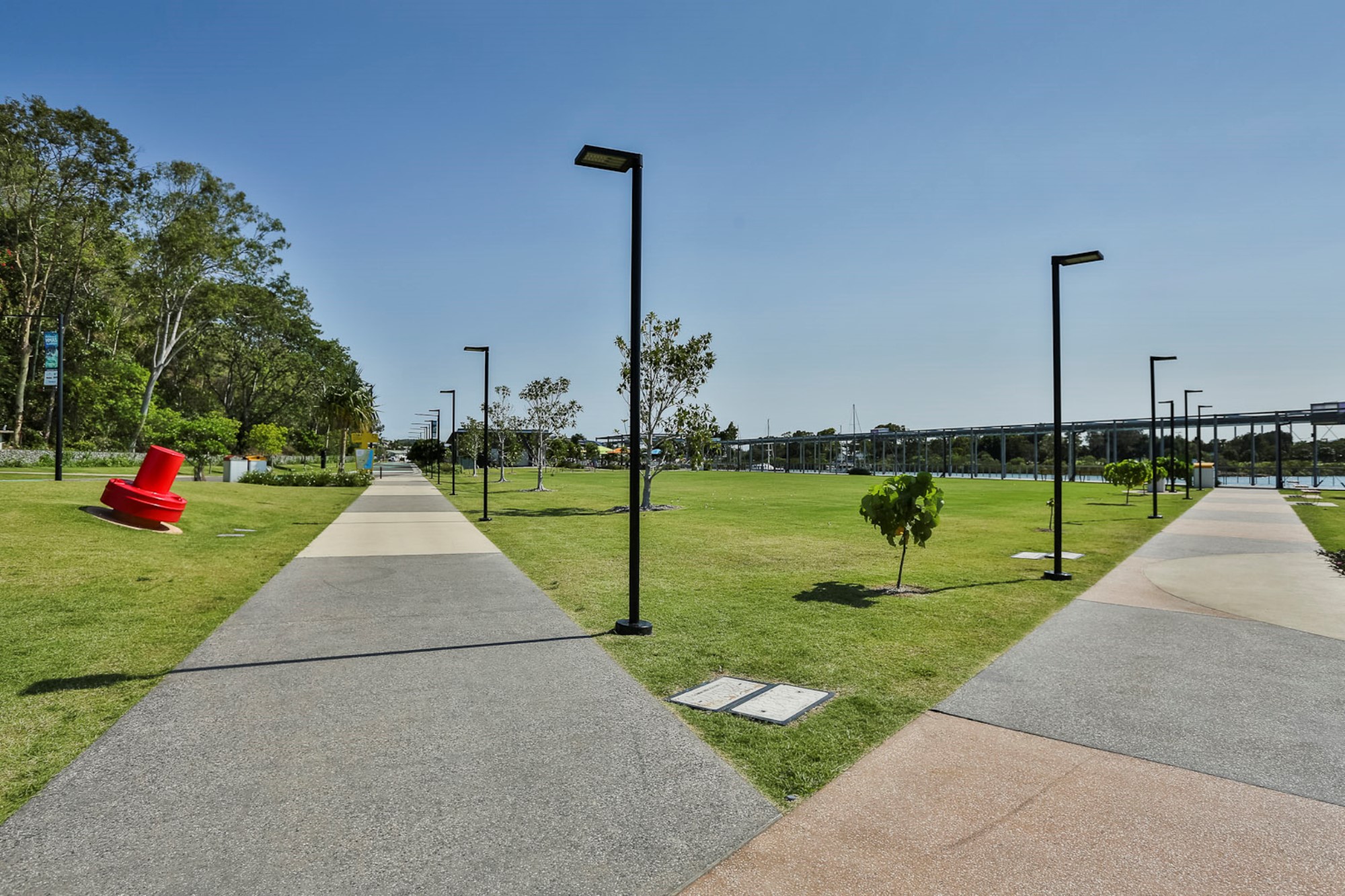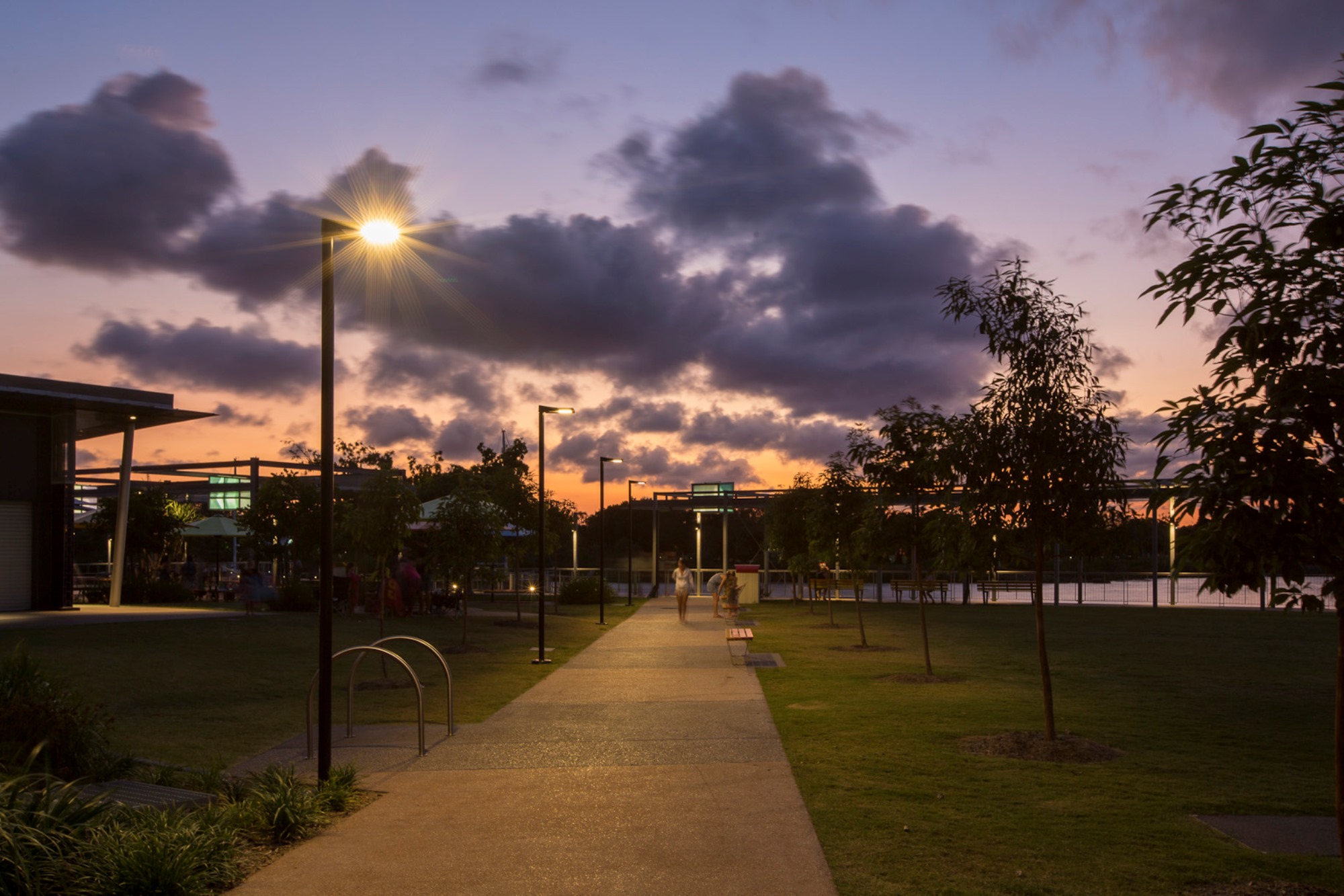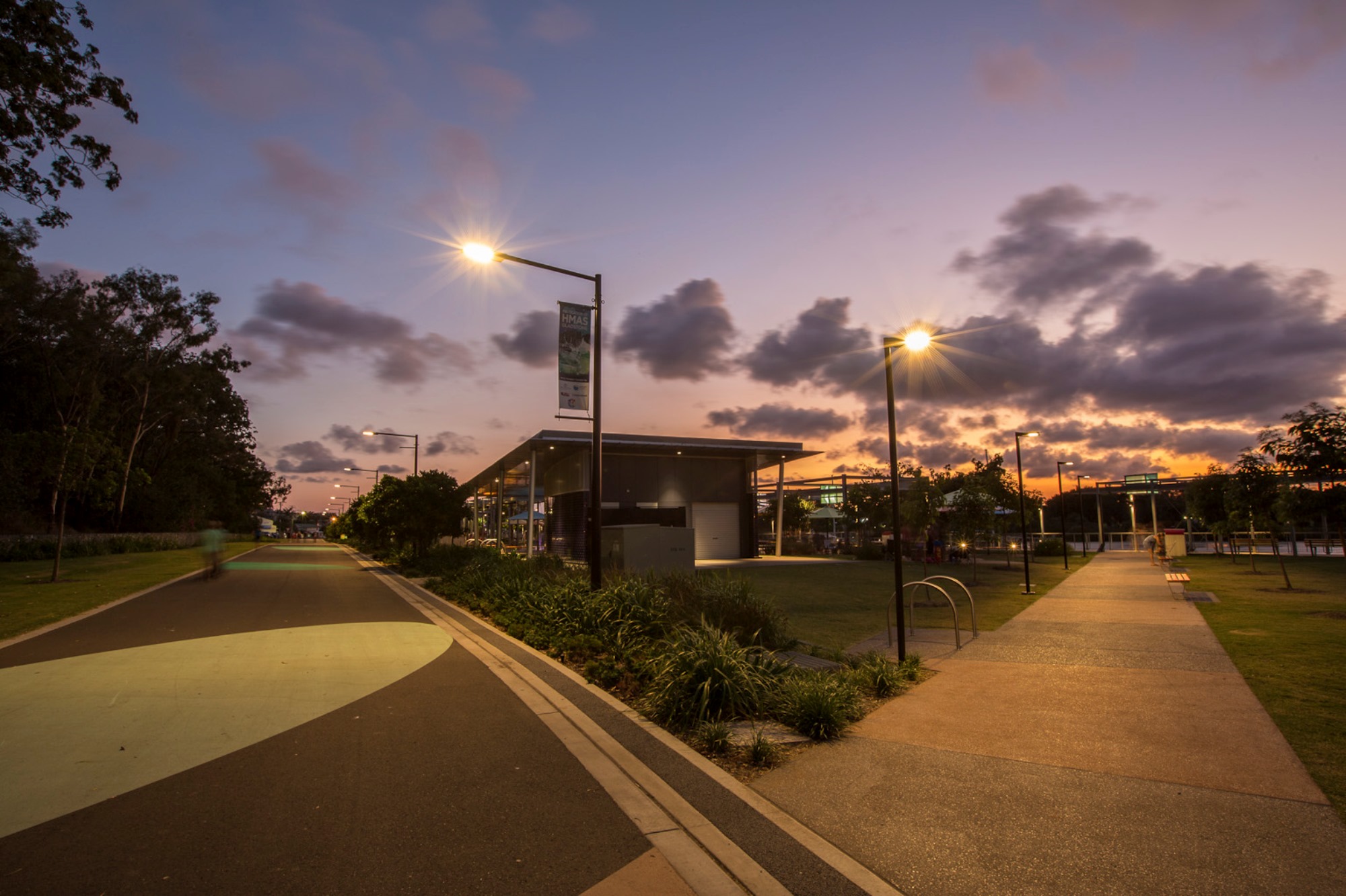 Raylinc Lighting supplied luminaires throughout the Maritime Precinct with primary focus on providing a bright, vibrant space for families to enjoy even when the sun goes down. We-ef VFL540 post top luminaires, mounted on a complex array of poles, lined the many path and road ways. Break away banner arms, security camera mounts and GPOs for festoon catenary lighting were just some of the variations required on poles supplied.