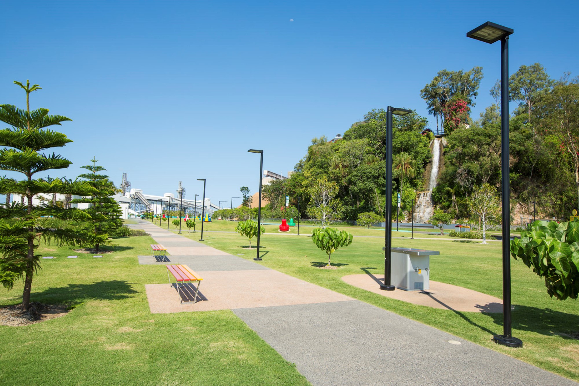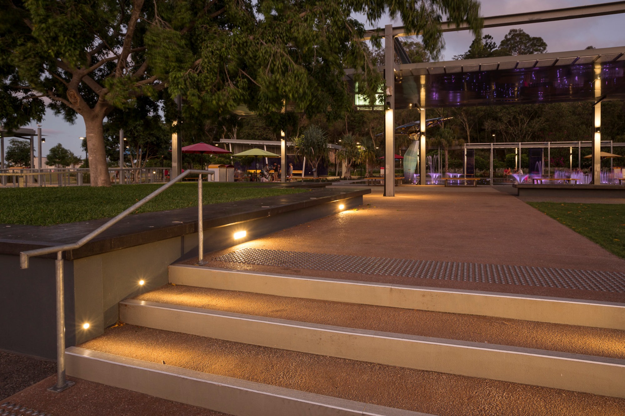 Ligman Arizona projectors were supplied in a light column to highlight several features within the Maritime Precinct while staying consistent with the lighting style of the area. Ligman Legend brick lights were used in the stairs leading to the boardwalk and Ligman Kios in ground up lights, suitable for wet locations, were installed sporadically throughout the water park adding to the lighting display.