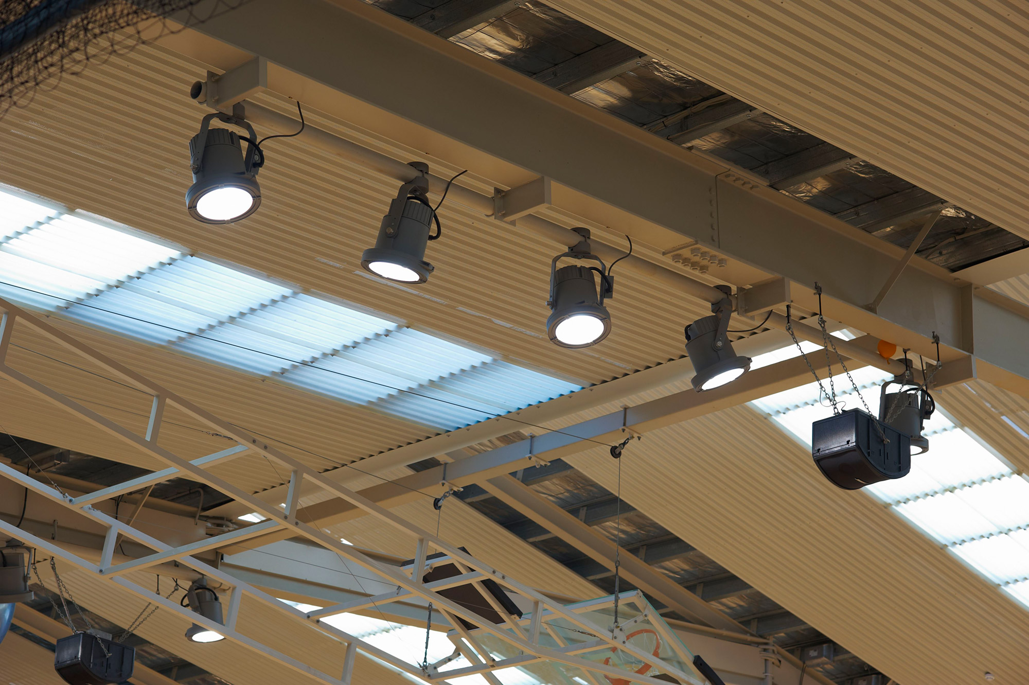 We-ef FLC metal halide luminaires mounted to the ceiling light each court to meet the International Basketball Federation illuminance standard. This competition standard requires a high level of playing light with a low level of glare to avoid interference with player performance. The FLC luminaire achieves this with it’s precision optics. These precision optics also enable individual courts to be lit with minimal spill light into adjacent areas. This means that the operator is able to switch on the luminaires required to light only the space being used, saving considerably on energy costs.