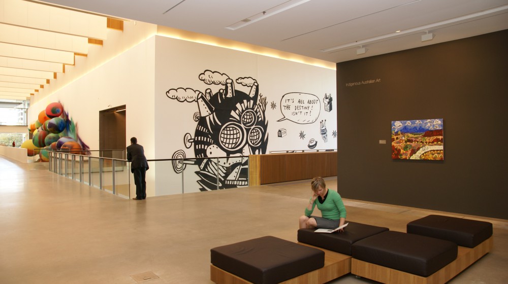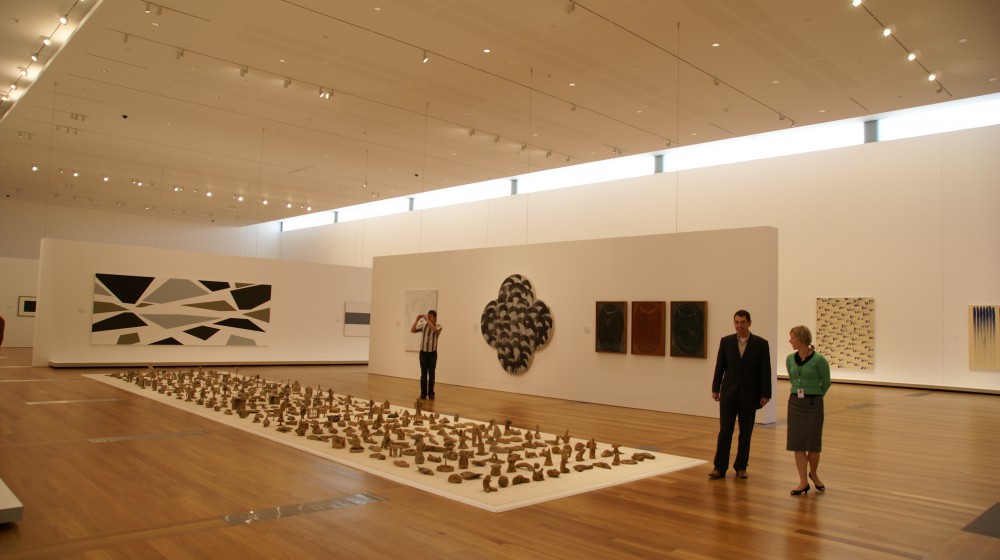ERCO’s track mounting system gives curators the flexibility to reposition the luminaires as exhibitions move through GOMA.